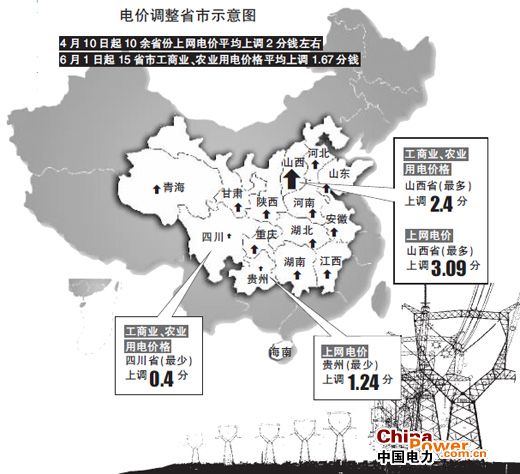 5月底,國(guó)家發(fā)改委決定自6月1日起,上調(diào)15省市非居民電價(jià)平均1.67分錢,本次電價(jià)調(diào)整范圍在原有基礎(chǔ)上增加了安徽、湖南、江西三省。