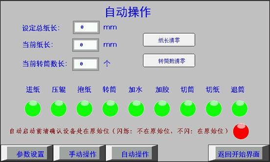 13:壓輥: (切筒原始位、推筒退限位、壓輥下限位、抱紙下限位在原始位置、第一送紙長(zhǎng)度達(dá)到)