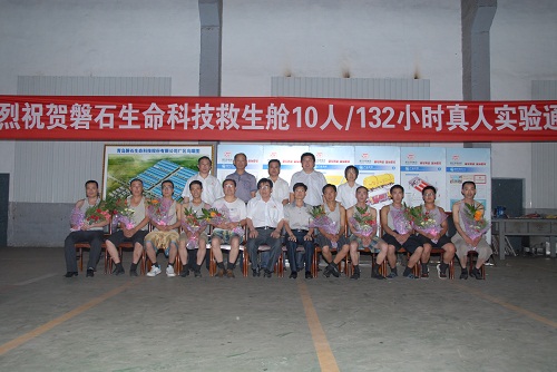 7月31日上午6時(shí)整,總經(jīng)理李培學(xué)親自帶隊(duì),在磐石生命科技救生艙內(nèi)生活了132小時(shí)的10名志愿者出艙了,經(jīng)過醫(yī)務(wù)人員現(xiàn)場(chǎng)體檢各項(xiàng)生命指標(biāo)正常。國(guó)家安全生產(chǎn)重慶礦用設(shè)備檢測(cè)中心的工作人員表示“磐石生命科技救生艙10人/132小時(shí)真人綜合防護(hù)實(shí)驗(yàn)”順利通過驗(yàn)收,132小時(shí)防護(hù)時(shí)間創(chuàng)造了10人艙全國(guó)最高紀(jì)錄。