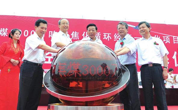 圖為山西省市領導出席年產(chǎn)60萬噸甲醇制烯烴工程開工啟動儀式。