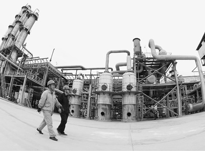 目前,青海省格爾木地區(qū)天然氣制甲醇規(guī)模達(dá)到年產(chǎn)100萬噸,成為亞洲最大的天然氣制甲醇基地。上圖為8月17日,兩名格爾木煉油廠甲醇車間轉(zhuǎn)化崗操作工經(jīng)過甲醇生產(chǎn)車間。