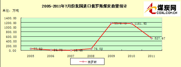 2005-2011年7月份我國進口俄羅斯煤炭數(shù)量統(tǒng)計