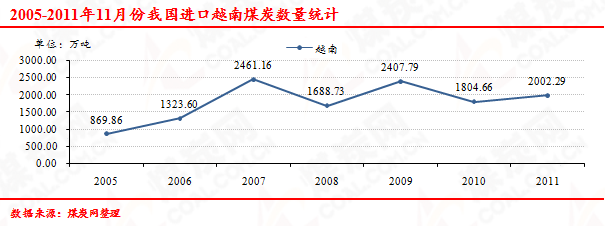 2005-2011年11月份我國進(jìn)口越南煤炭數(shù)量走勢統(tǒng)計