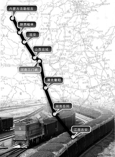 記者通過國家發(fā)改委的官方網(wǎng)站看到,新近批復(fù)的“蒙西鐵路”建設(shè)方案中,該線路北起東烏鐵路浩勒報吉站,途經(jīng)內(nèi)蒙古自治區(qū)鄂爾多斯地區(qū)、陜西省榆林、延安地區(qū)、山西省運(yùn)城地區(qū)、河南省三門峽、南陽地區(qū)、湖北省襄陽、荊門、荊州地區(qū)、湖南省岳陽地區(qū),終點到達(dá)江西省吉安,線路全長1837公里,總投資高達(dá)1598億元,已經(jīng)被列入鐵路“十二五”建設(shè)規(guī)劃中。據(jù)省政府相關(guān)部門的有關(guān)人士透露,“蒙華鐵路”項目是今年1月份批復(fù)的。國家發(fā)改委給“蒙華鐵路”的基本功能定位是,連接蒙陜甘寧能源“金三角”地區(qū)與鄂湘贛等華中地區(qū),是“北煤南運(yùn)”新的國家戰(zhàn)略運(yùn)輸通道。據(jù)了解,“蒙華鐵路”最遲將于年底開工建設(shè)。