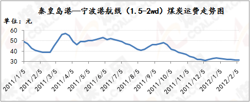 沿海煤炭運輸方面, 本周國內(nèi)沿海煤炭運輸市場出現(xiàn)止跌回升跡象,煤炭網(wǎng)信息研究中心截至2月10日的相關數(shù)據(jù)顯示,秦皇島港至寧波港(1.5-2萬噸船型)和上海港(4-5萬噸船型)的運價均出現(xiàn)微幅回升至31.8元/噸、29.3元/噸,較本周初2月6日的運價分別上升0.6元/噸、0.7元/噸。春節(jié)過后尤其是元宵節(jié)以后國內(nèi)電廠日耗煤呈現(xiàn)增長態(tài)勢,南方低溫也促進了取暖用煤小幅增長,一定程度上略微拉動了沿海煤運市場,另外,雖然此次油價上漲對沿海運輸市場的影響不大,但也在一定程度上支撐了煤炭運價。