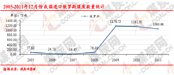 2005-2011年12月份我國(guó)進(jìn)口俄羅斯煤炭數(shù)量走勢(shì)統(tǒng)計(jì)