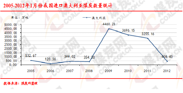 2005-2012年1月份我國進(jìn)口澳大利亞煤炭數(shù)量走勢(shì)統(tǒng)計(jì)