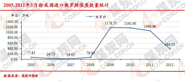 2005-2012年3月份我國進(jìn)口俄羅斯煤炭數(shù)量走勢統(tǒng)計