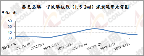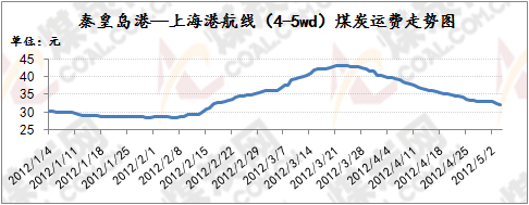 華東沿海煤炭運(yùn)輸市場延續(xù)低迷趨勢(shì),沿海煤炭運(yùn)價(jià)已經(jīng)連續(xù)六周下行,部分船舶已經(jīng)停航,雖然近期運(yùn)費(fèi)下行幅度有所緩和,但在下游運(yùn)煤需求不足的背景下,沿海煤運(yùn)市場的低迷形勢(shì)短時(shí)間難以扭轉(zhuǎn)。六周之內(nèi)截至5月4日,秦皇島港至寧波港(1.5-2萬噸)煤炭海運(yùn)費(fèi)總降11.7元/噸至35.1元/噸;秦皇島港至上海港(4-5萬噸)煤炭運(yùn)費(fèi)整體下探10.9元/噸至32.1元/噸;秦皇島港至張家港(2-3萬噸)煤炭運(yùn)費(fèi)整體下滑12.3元/噸至35.7元/噸。