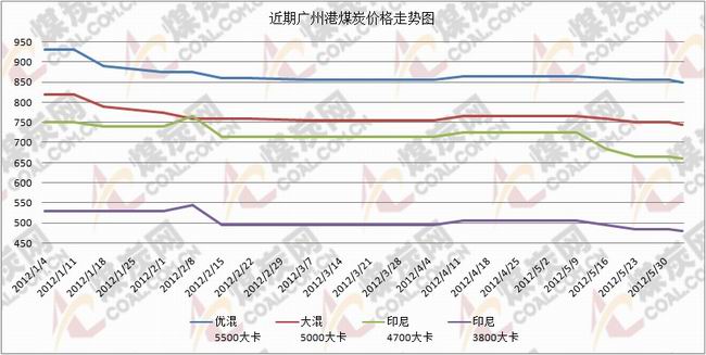 本周華南地區(qū)煤炭市場繼續(xù)呈現(xiàn)弱勢穩(wěn)定態(tài)勢,港口存煤依舊高位運行。 下游電廠存煤充裕,對港口煤炭采購熱情不高,港口印尼煤高位堆存,面臨銷售滯緩、煤價下跌的壓力。北方港口從發(fā)運港口到接卸港的“高庫存”,再到電廠的“煤滿為患”,本周秦皇島港口動力煤價格再次下跌,下跌幅度擴(kuò)大。其中Q5500大卡掛牌價765-775元/噸,比“電煤”最高限價水平低30元/噸,Q5000大卡掛牌價665-675元/噸,Q5800大卡掛牌價815-825元/噸,較上周均下跌5元。其中Q4500大卡掛牌價555-565元/噸,較上周下跌10元。面對目前低迷的動力煤消費現(xiàn)狀,高庫存對市場的動力煤價格的壓制已經(jīng)十分明顯,去庫存化過程正在抑制電力企業(yè)當(dāng)前乃至“迎風(fēng)度夏”過程中對電煤的采購需求。受電煤消費減弱的影響,重點電力企業(yè)存煤繼續(xù)攀升。截止到5月28日,六大電廠電煤庫存總量為1660.50萬噸,較上周同期增加110.59萬噸;六大電廠電煤日消耗量為55.91萬噸,較上周同期增加1.05萬噸;六大電廠電煤庫存可用天數(shù)為29.7天。本周華南地區(qū)煉焦煤市場呈現(xiàn)弱勢下行態(tài)勢,福建地區(qū)鋼廠焦煤接收價格有所下調(diào)。無煙煤市場需求低迷,走貨不暢,市場悲觀情緒較濃。