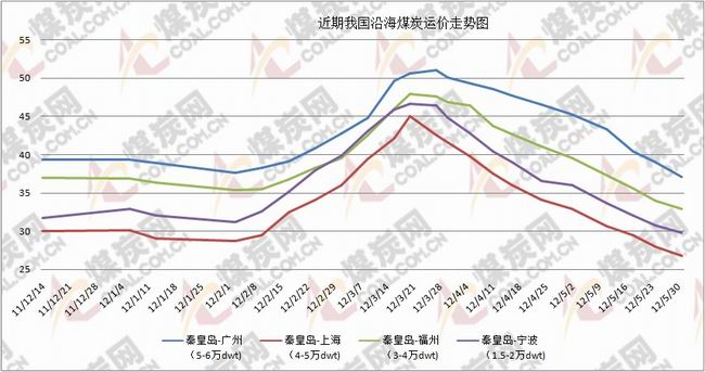 沿海運費:國內(nèi)煤炭市場需求進(jìn)入淡季,市場行情低迷,沿海煤炭運價繼續(xù)探底。據(jù)煤炭網(wǎng)信息研究中心數(shù)據(jù)顯示,截止到