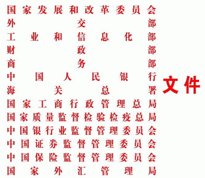 國務(wù)院有關(guān)部門、直屬機構(gòu),全國工商聯(lián),各省、自治區(qū)、直轄市及計劃單列市、副省級省會城市、新疆生產(chǎn)建設(shè)兵團發(fā)展改革委、外事辦公室、工業(yè)和信息化廳(局)、財政廳(局)、商務(wù)廳(局)、人民銀行分行、各地海關(guān)、工商行政管理局(市場監(jiān)督管理局)、質(zhì)檢局、銀監(jiān)局、證監(jiān)局、保監(jiān)局、外匯局: