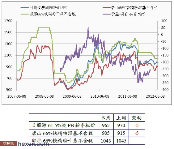 供給上看:雖然我國目前對鐵礦石的需求有所下降,但力拓依舊看好中國未來的需求,他們預(yù)計中國經(jīng)濟(jì)下半年增速在降息等政策的影響下還將上揚,全年經(jīng)濟(jì)增速有望超過8%,因此力拓也繼續(xù)擴(kuò)大其產(chǎn)能;受印度政府減免鐵礦球團(tuán)15%關(guān)稅的影響,眾多貿(mào)易商也因此考慮球團(tuán)的生產(chǎn)和出口,受此影響,印度礦山向政府施壓,要求解除礦石出口禁令,但短期內(nèi)還無法構(gòu)成對國內(nèi)礦石市場的影響。