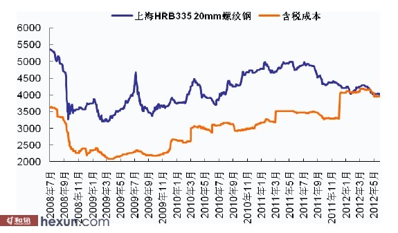 雖然本周螺紋現(xiàn)貨價格繼續(xù)小幅陰跌,但原材料價格也紛紛下降,另外6月份普氏指數(shù)均價也繼續(xù)小幅下滑,因此并未太多的壓縮鋼廠的利潤空間。按照鐵礦石月度定價的方式計算,目前二級螺紋鋼的含稅成本大約在3950元/噸左右。