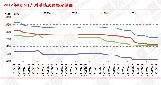 本周華南地區(qū)煤炭市場弱勢運(yùn)行,價格暫時保持穩(wěn)定。由于近期華南地區(qū)降水量下降,火力電廠負(fù)荷逐步回升至50%左右,企業(yè)用煤量有所增加。但目前仍處于去庫存階段,出貨壓力依然較大。本周北方市場港口動力煤價格繼續(xù)下調(diào),下調(diào)幅度繼續(xù)減弱,煤價有觸底跡象。目前秦皇島港Q5800大卡平倉價690-700元/噸,周環(huán)比下降5元;Q5500大卡平倉價620-630元/噸,周環(huán)比下降5元;Q5000大卡平倉價525-535元/噸,周環(huán)比不變;Q4500平倉價425-435元/噸,周環(huán)比下降5元。截止到8月2日,港口共存煤816.7萬噸,港口存煤下降較快。主要是受雙臺風(fēng)影響,企業(yè)為趕在臺風(fēng)來臨之前拉運(yùn)煤炭;其次下游電廠庫存量處于高位,主力電廠燃煤可用天數(shù)減少,企業(yè)拉煤的積極性有所提升。本周華南地區(qū)煉焦煤市場繼續(xù)呈現(xiàn)弱勢穩(wěn)定態(tài)勢,無煙煤市場存煤小幅下降,煤炭需求略有上升,但是仍處于去庫存階段,市場成交情況較弱。