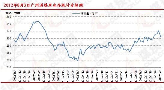 港口庫存方面:煤炭網(wǎng)信息研究中心數(shù)據(jù)顯示,截止到8月3日,廣州港存煤304.1萬噸,周環(huán)比減少7萬噸。其中新沙公司存煤163萬噸;環(huán)比減少7萬噸;西基公司存煤54萬噸,環(huán)比增加3萬噸;新港公司存煤14.14萬噸,環(huán)比減少0.7萬噸;黃埔公司存煤72.9萬噸,環(huán)比增加3.2萬噸。