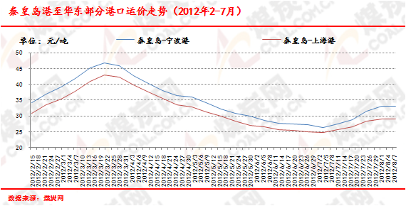 華東沿海煤炭運(yùn)輸市場(chǎng)本周呈現(xiàn)反彈無(wú)力的狀態(tài),自8月3日至8月10日,秦皇島港至寧波港(1.5-2萬(wàn)噸)煤炭海運(yùn)費(fèi)基本持穩(wěn)在33.3元/噸;秦皇島港至上海港(4-5萬(wàn)噸)煤炭運(yùn)費(fèi)與上周持平在29.1元/噸;秦皇島港至張家港(2-3萬(wàn)噸)煤炭運(yùn)費(fèi)微漲0.1元/噸至34.2元/噸。