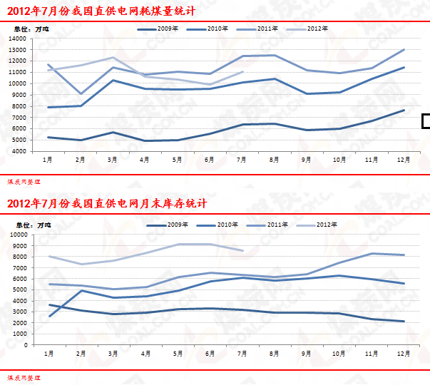 2012年7月全國(guó)重點(diǎn)發(fā)電企業(yè)耗煤/庫(kù)存情況 | |||||||||||