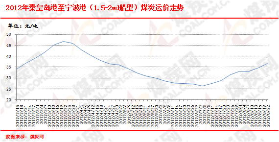 寧波港動(dòng)力煤市場(chǎng)近期持穩(wěn)并現(xiàn)小幅上漲的支撐因素主要有:第一,北方中轉(zhuǎn)港口動(dòng)力煤價(jià)格止跌后連續(xù)三周持穩(wěn),部分低熱值煤甚至在試探性上漲,這一好轉(zhuǎn)跡象直接對(duì)下游接卸港——寧波港煤炭市場(chǎng)產(chǎn)生利好影響,市場(chǎng)信心稍有恢復(fù);第二,前期臺(tái)風(fēng)暴雨天氣影響港口運(yùn)輸中斷數(shù)天,臺(tái)風(fēng)過(guò)后下游用戶有小幅的補(bǔ)倉(cāng)行為,加上近期到港煤炭減少,港口庫(kù)存出現(xiàn)明顯下降,浙江主要港口存煤量也由此一度降到500萬(wàn)噸以下;第三,沿海煤炭運(yùn)費(fèi)近期持續(xù)小幅上漲,秦皇島港至寧波港1.5-2萬(wàn)噸船型運(yùn)價(jià)目前已經(jīng)漲至37元/噸左右,較月初上漲了近4元/噸(如下圖),一方面與煤炭海運(yùn)需求增加有關(guān),另一方面,船舶因前期虧損紛紛停航,尚未恢復(fù)運(yùn)營(yíng)。