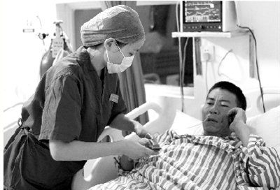 30日,攀枝花攀煤總醫(yī)院重癥監(jiān)護(hù)室,一名護(hù)士正在對(duì)傷員進(jìn)行監(jiān)護(hù)治療。