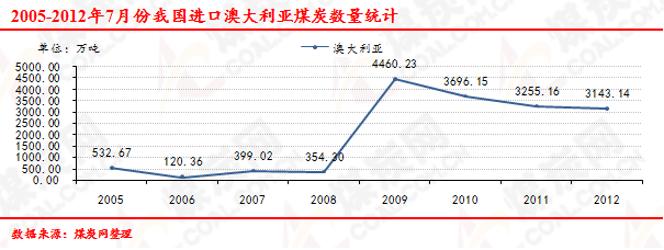 2005-2012年7月份我國進(jìn)口澳大利亞煤炭數(shù)量走勢統(tǒng)計(jì)