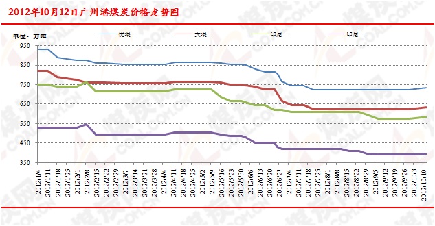 【動(dòng)力煤市場(chǎng)】本周廣州港存煤增加,主要是由于雙節(jié)前訂貨集中到貨,但是市場(chǎng)實(shí)際采購(gòu)情況較為穩(wěn)定。港口內(nèi)外貿(mào)煤炭市場(chǎng)價(jià)格基本處于穩(wěn)定狀態(tài),變化較小。截止到10月12日,廣州港存煤存煤308.78萬(wàn)噸,周環(huán)比增加16.23萬(wàn)噸。現(xiàn)港口內(nèi)外貿(mào)煤炭?jī)r(jià)格均維持穩(wěn)定,其中山西優(yōu)混5500大卡港口庫(kù)提價(jià)730-740元/噸,山西大混山5000大卡港口庫(kù)提價(jià)630-640元/噸,均小幅上漲5元;大混4500大卡港口庫(kù)提價(jià)545-555元/噸。神木優(yōu)混1號(hào)Q5500A12V28S0.3港口庫(kù)提價(jià)755元/噸,神木塊煤Q6100A4V28S0.2港口庫(kù)價(jià)1020元/噸。外貿(mào)煤方面:現(xiàn)澳洲煤Q5000大卡港口庫(kù)提價(jià)630元/噸;印尼煤Q4700大卡港口到岸參考價(jià)580-590元/噸,Q3800大卡港口庫(kù)提價(jià)390-400元/噸;越南洪基11AQ4800大卡港口庫(kù)提價(jià)640-650元/噸;價(jià)格均保持不變。截止到目前印尼至中國(guó)南部沿海的煤炭運(yùn)費(fèi)保持穩(wěn)定,目前印尼加里曼丹港-廣州港(5-6萬(wàn)噸)運(yùn)價(jià)9美元/噸,較上期保持穩(wěn)定,印尼加里曼丹港-廣州港(6-7萬(wàn)噸)運(yùn)價(jià)7美元/噸,與上期相比保持穩(wěn)定。