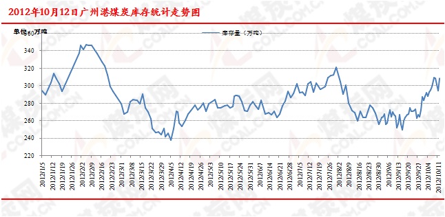 港口庫(kù)存方面:煤炭網(wǎng)信息研究中心數(shù)據(jù)顯示,10月12日,廣州港存煤308.78萬(wàn)噸,周環(huán)比增加16.23萬(wàn)噸。其中新沙公司存煤172萬(wàn)噸;周環(huán)比增加13萬(wàn)噸;西基公司存煤67萬(wàn)噸,環(huán)比增加4萬(wàn)噸;新港公司存煤11.1萬(wàn)噸,環(huán)比增加2.18萬(wàn)噸;黃埔公司存煤58.6萬(wàn)噸,環(huán)比減少8萬(wàn)噸。
