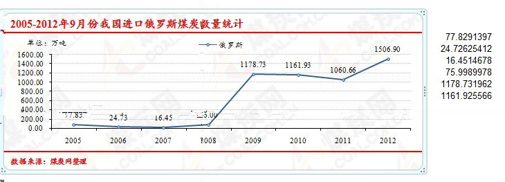 2005-2012年9月份我國(guó)進(jìn)口俄羅斯煤炭數(shù)量走勢(shì)統(tǒng)計(jì)