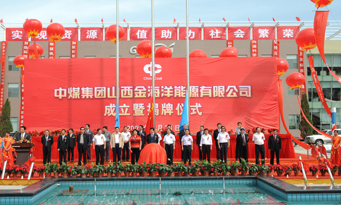 8月28日,中煤集團山西金海洋能源有限公司成立暨揭牌儀式在金海洋工業(yè)園區(qū)隆重舉行,標志著中煤集團與山西省合作又結(jié)出新的碩果。山西省人民政府副秘書長王成,省煤炭廳副廳長牛建民,省煤監(jiān)局副局長薛勇軍,省發(fā)改委處長趙敏崎,省安監(jiān)局處長李高平,省煤監(jiān)局處長李守釗,朔州市市長馮改朵、市人大主任李彪、市政協(xié)主席高厚,山陰縣縣長侯元、縣人大主任李國勝、縣政協(xié)主席袁林生出席揭牌儀式;中煤集團黨委書記、副董事長紀喜來主持儀式;中煤集團總經(jīng)理王安、副總經(jīng)理洪宇、總會計師彭毅、總法律顧問周立濤,中煤能源股份公司副總裁高建軍,以及中煤集團副總工程師、副總會計師,相關(guān)部門負責人出席揭牌儀式。