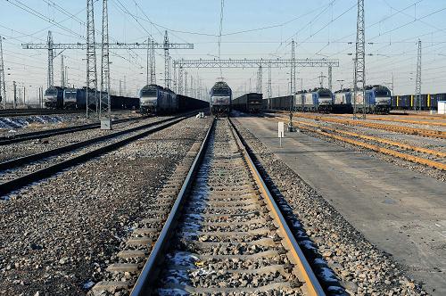 1月28日,在大秦煤炭運輸專線起點大同市湖東站,萬噸煤炭運輸列車整裝待發(fā)