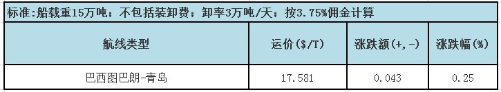 此表包含巴西圖巴朗-青島運(yùn)價(jià)指數(shù)的本期和上期數(shù),以及同比增減。