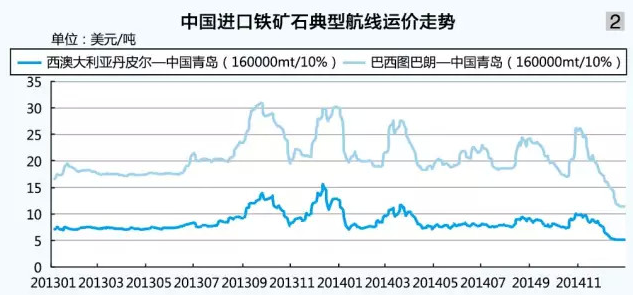 淡水河谷超大型礦砂船全部投入使用;其與中遠(yuǎn)、山東海運(yùn)、招商輪船簽訂長(zhǎng)期運(yùn)輸協(xié)議又將增加超大型礦砂船訂單;與青島港簽約建分銷(xiāo)中心,以及蘇比克灣和馬來(lái)西亞轉(zhuǎn)運(yùn)中心等均會(huì)降低其在現(xiàn)貨市場(chǎng)尋船的機(jī)會(huì)。