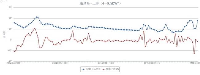 11月4日,上海航運交易所發(fā)布的煤炭貨種運價指數(shù)報收1227.42點,較上周上漲3.6%。中國沿海煤炭運價指數(shù)(CBCFI)中,秦皇島-上海(4-5萬dwt)航線運價為43.6元/噸,較上周五上漲0.3元/噸;秦皇島-張家港(2-3萬dwt)航線運價為49.3元/噸,較上周五上漲0.7元/噸;黃驊-上海(3-4萬dwt)航線運價為44.9元/噸,較上周五上漲0.5元/噸。華南航線相對平穩(wěn),11月4日,秦皇島-廣州(6-7萬dwt)航線運價為46.0元/噸,與上周持平。