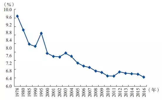 圖6 1978—2016年全國輸電線路損失率變化情況