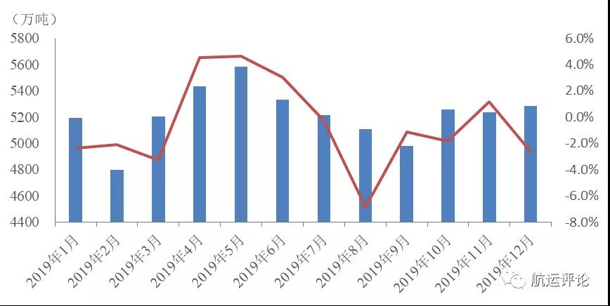 數(shù)據(jù)來源:MPA圖2 2019年新加坡港口貨物吞吐量及增速