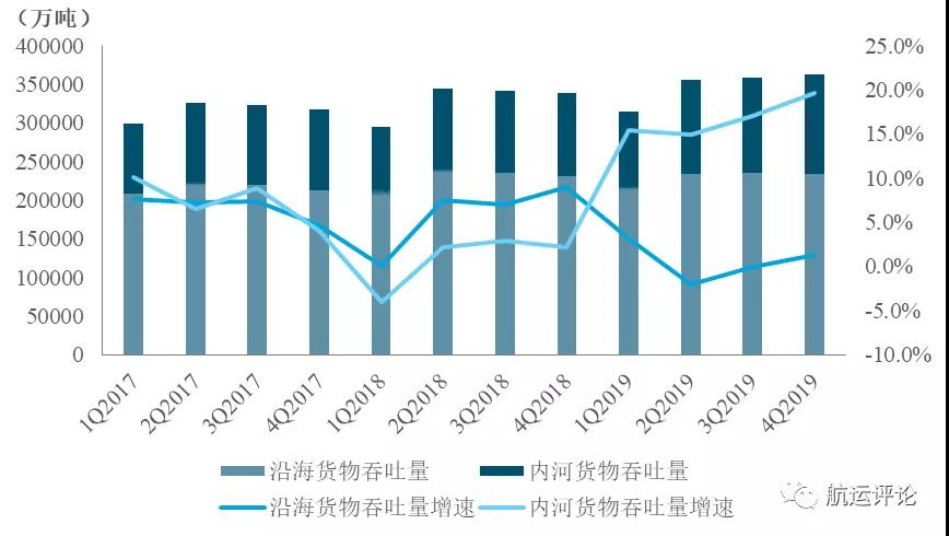 內(nèi)需提振中國內(nèi)河港口貨物吞吐量大幅增長2019年,中國面臨的經(jīng)貿(mào)環(huán)境不容樂觀,GDP實際增速預(yù)計為6.1%,為1992年有統(tǒng)計數(shù)據(jù)以來的年度最低值;外貿(mào)進出口總值31.54萬億元人民幣,同比增長3.4%,與去年9.7%的增速相比放緩明顯。但中國國內(nèi)需求穩(wěn)步擴大,前11個月中國社會消費品零售總額同比增長8%,中國消費正在高基數(shù)的基礎(chǔ)上加快增長。在此背景下,中國港口貨物吞吐量總體保持較快增長,內(nèi)需提振內(nèi)河港口貨物吞吐量增長強勁,成為推動中國港口貨物吞吐量增長的主要動力。