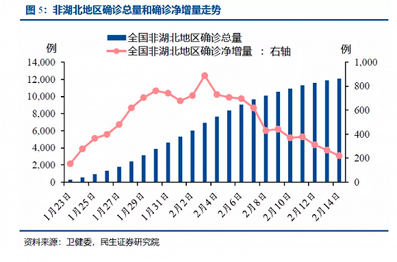 非湖北地區(qū)新增確診病例有所下降。從2月4日開始,全國非湖北地區(qū)新增確診病例逐漸下降,從2月3日高點的888例下降至2月14日的221例,防疫工作取得一定進展。
