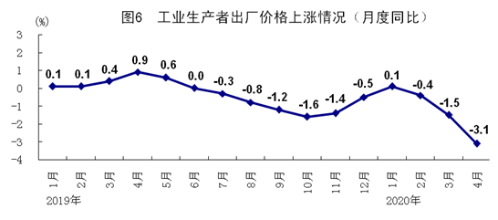 4月份,全國(guó)工業(yè)生產(chǎn)者出廠價(jià)格同比下降3.1%,降幅比3月份擴(kuò)大1.6個(gè)百分點(diǎn);環(huán)比下降1.3%。工業(yè)生產(chǎn)者購(gòu)進(jìn)價(jià)格同比下降3.8%,環(huán)比下降2.3%。1-4月份,全國(guó)工業(yè)生產(chǎn)者出廠價(jià)格和工業(yè)生產(chǎn)者購(gòu)進(jìn)價(jià)格同比分別下降1.2%和1.5%。