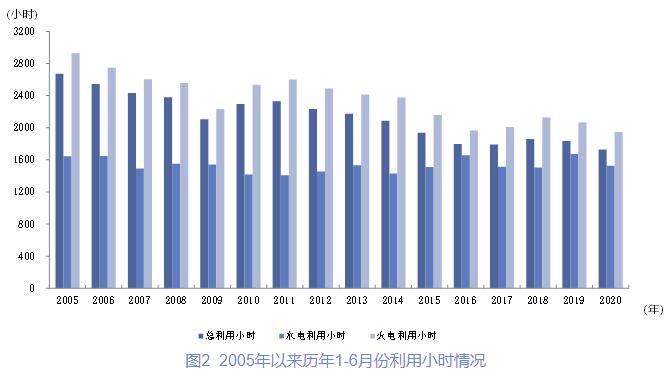 1-6月份,全國發(fā)電設備累計平均利用小時1727小時,比上年同期降低107小時。