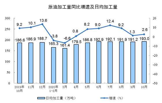 | 原油加工量(萬(wàn)噸) | 5982 | 2.6 | 55518 | 2.9 |
