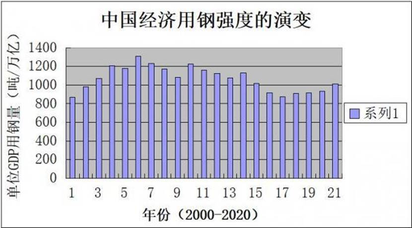 用鋼強度在這里特指每單位國內(nèi)生產(chǎn)總值(GDP)的用鋼量。中國的用鋼強度高具有多方原因,但很大程度上反映了中國的國情和選擇的發(fā)展道路。