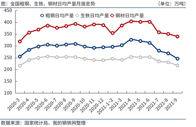 9月份全國粗鋼日均產(chǎn)量245.83萬噸,較上月大幅下降8.4%,創(chuàng)下2019年以來單月新低。由于各地“能耗雙控”政策趨嚴,加上電煤供應偏緊,9月份工業(yè)企業(yè)限電限產(chǎn),鋼廠產(chǎn)量也明顯下降。