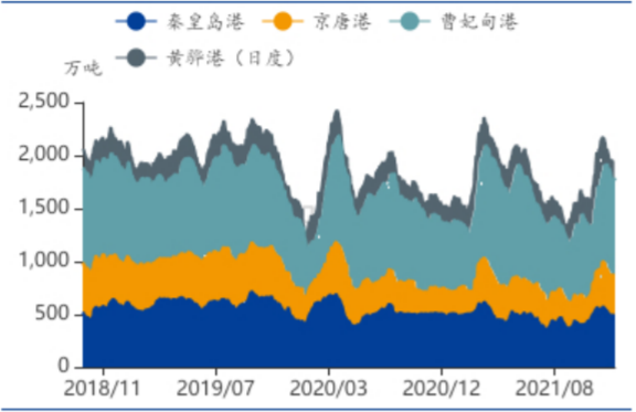 目前為止,之前稱在本月中旬保供就將結(jié)束的消息并不全面,事實(shí)上保供政策尚未退出,僅晉北地區(qū)部分煤礦完成了保供任務(wù)。受此影響,鐵路發(fā)運(yùn),尤其是長(zhǎng)協(xié)煤發(fā)運(yùn)依舊保持高位;同時(shí)隨著大集團(tuán)外購(gòu)煤價(jià)格的大幅下調(diào),產(chǎn)地煤價(jià)緊跟下調(diào),使發(fā)運(yùn)倒掛情況有所緩解,帶動(dòng)港口調(diào)入維持高位。