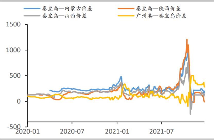 港口和產(chǎn)地價(jià)差情況(單位:元/噸)