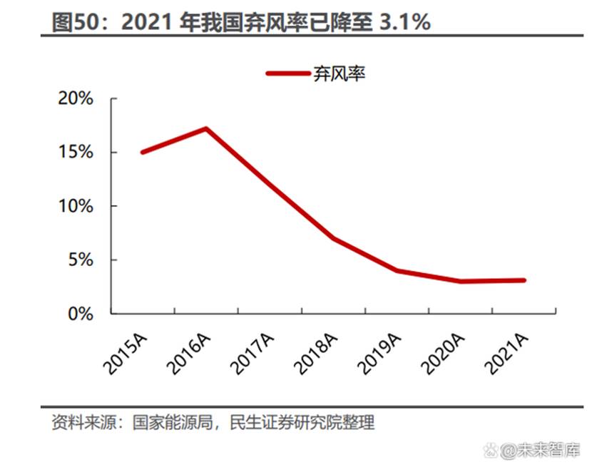 “十三五”期間受限于外送通道的建設(shè),以及風(fēng)光電源由于自身出力對電網(wǎng)的沖擊性較大,國內(nèi)棄風(fēng)、棄光率較高,消納問題始終是懸在風(fēng)光發(fā)展之路上的“達(dá) 摩利克斯之劍”。“十四五”期間通過大規(guī)模的電網(wǎng)投資以及特高壓建設(shè),三北地區(qū) 棄風(fēng)、棄光率逐漸下行,但是隨著第一批、第二批風(fēng)光大基地項(xiàng)目開工建設(shè),西部 新能源基地棄風(fēng)棄光率問題仍值得關(guān)注。