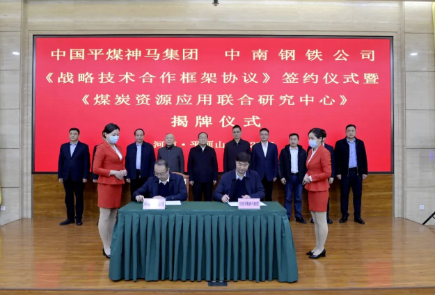 2月9日上午,中國平煤神馬集團(tuán)與中南鋼鐵公司《戰(zhàn)略技術(shù)合作框架協(xié)議》簽約儀式暨“煤炭資源應(yīng)用聯(lián)合研究中心”揭牌儀式在集團(tuán)會(huì)議中心舉行。集團(tuán)總經(jīng)理杜波,中南鋼鐵公司總裁、黨委副書記吳琨宗出席儀式,并就深化合作親切交流。