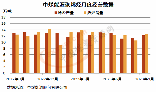 9月份,中煤能源聚乙烯產(chǎn)量6.5萬噸,同比持平,環(huán)比增長12.1%;銷量7.1萬噸,同比增加12.7%,環(huán)比增長34%。聚丙烯產(chǎn)量5.8萬噸,同比下降7.9%,環(huán)比增長1.8%,銷量5.6萬噸,同比下降9.7%,環(huán)比增長5.7%。
