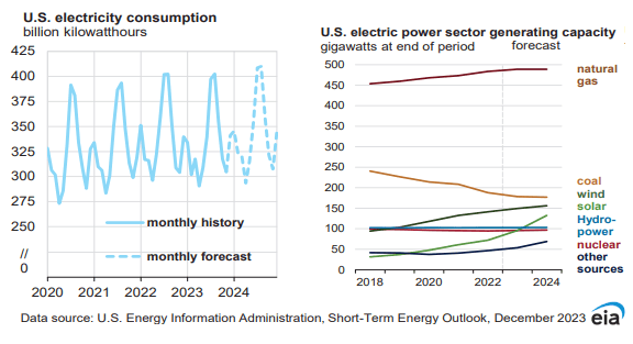 而隨著經(jīng)濟(jì)增長加速,2024年,美國電力需求預(yù)計將再次增加至41030億千瓦時,低于前一月預(yù)期值41160億千瓦時。