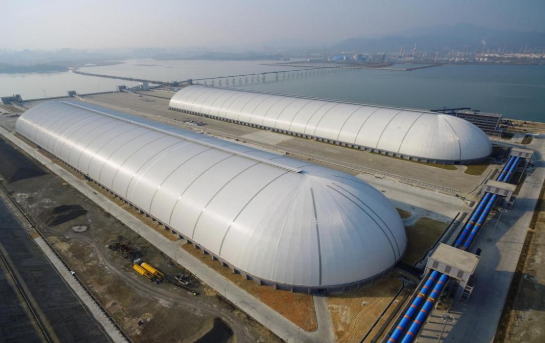 最具特色的是兩座“長500米、寬118米、高42米”的全亞洲最大的環(huán)保鋼結(jié)構(gòu)條形封閉煤倉,其創(chuàng)新性的設(shè)計榮獲2019年“中國鋼結(jié)構(gòu)金獎”。惠州荃灣煤炭港的綠色發(fā)展以“一套海陸空三位一體的污染防治體系+光伏項目+碼頭岸電設(shè)施”為核心的三個“綠色法寶”。煤炭出入倉封閉作業(yè)、皮帶機封閉式作業(yè)、多重除塵裝置三大保障,實現(xiàn)了防治煤灰、揚塵污染。因地制宜布置了分布式光伏設(shè)備,年均可為港口提供清潔電能約597.2萬kWh,節(jié)約標(biāo)準(zhǔn)煤約733.96噸/年。通過建設(shè)岸電設(shè)施及含油、含煤、生活三大污水處理站,基本實現(xiàn)了“零污染、零排放”,為構(gòu)建零碳港口建設(shè)示范標(biāo)桿注入綠色新動能。