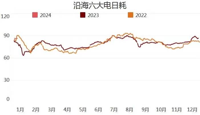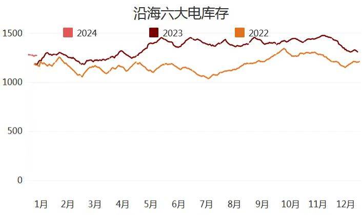 截止1月12日,沿海六大電廠日耗85.9萬噸,周環(huán)比下降1.1萬噸,總庫存合計1276.4萬噸,周環(huán)比上升8.4萬噸?捎锰鞌14.8周環(huán)比上升0.2天。